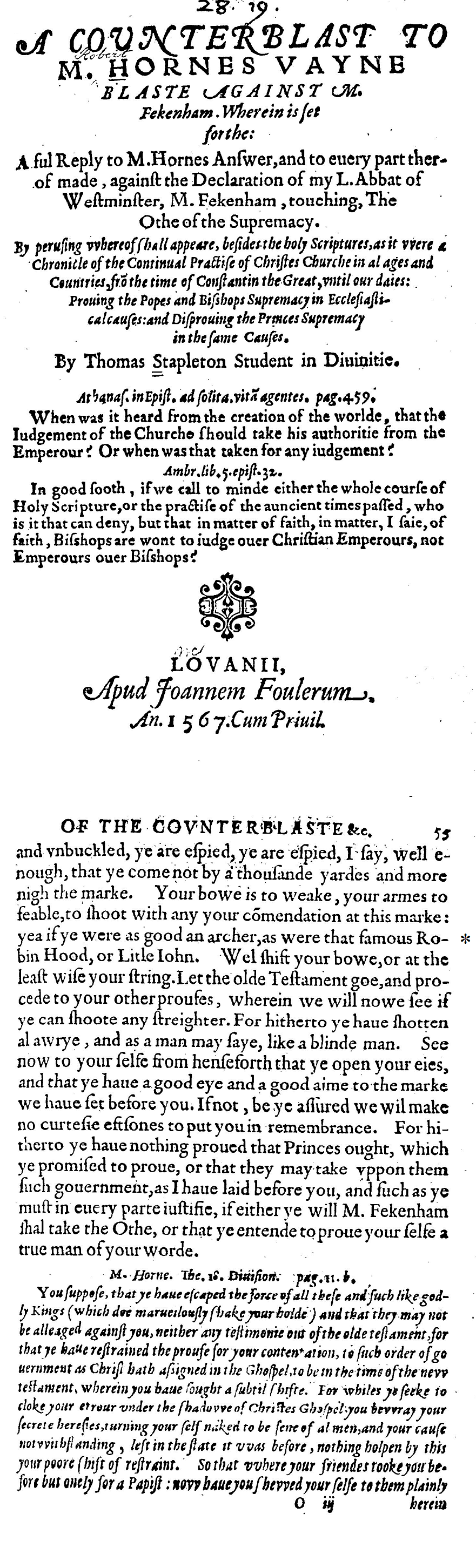 A counterblast to M. Hornes vayne blaste against M. Fekenham