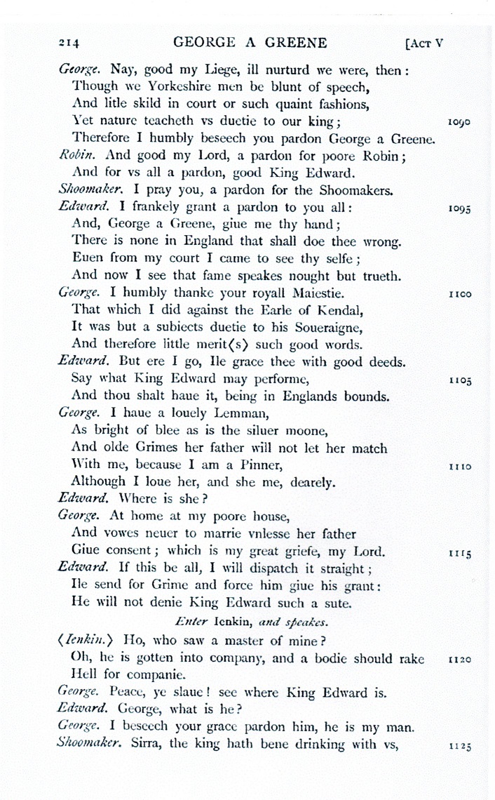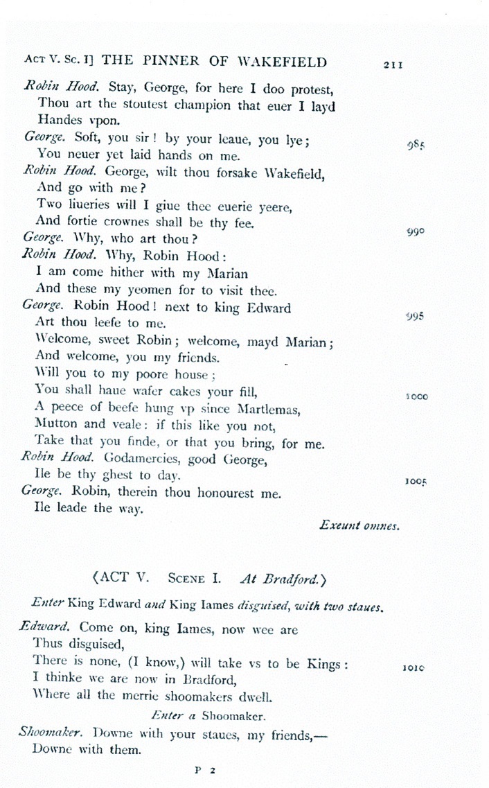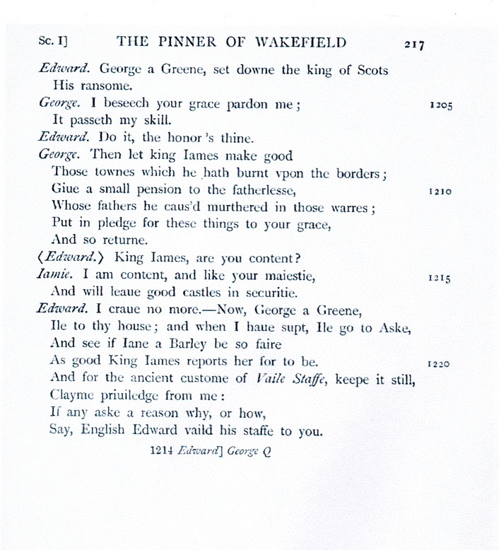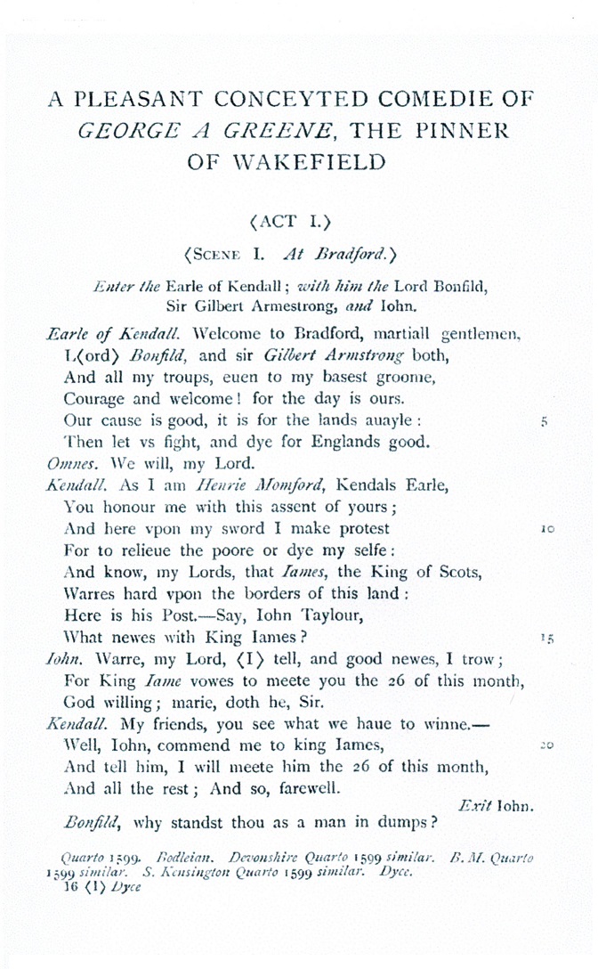 A Pleasant Conceyted Comedie of George a Greene, the Pinner of Wakefield (Excerpt)