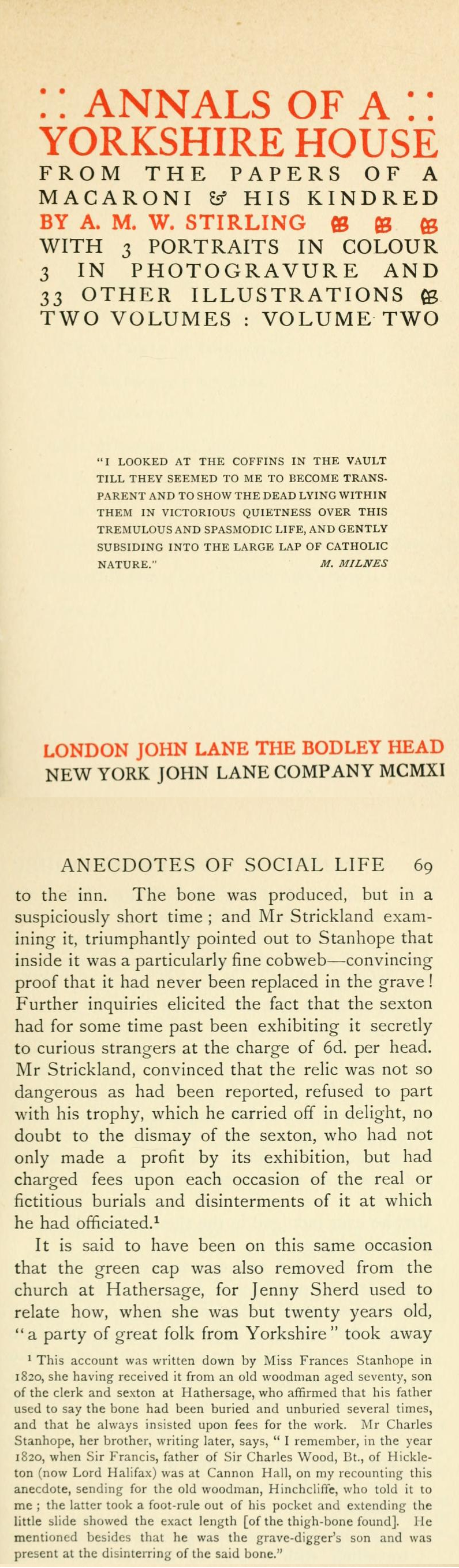 Annals of a Yorkshire House 2, A. M. W. Stirling