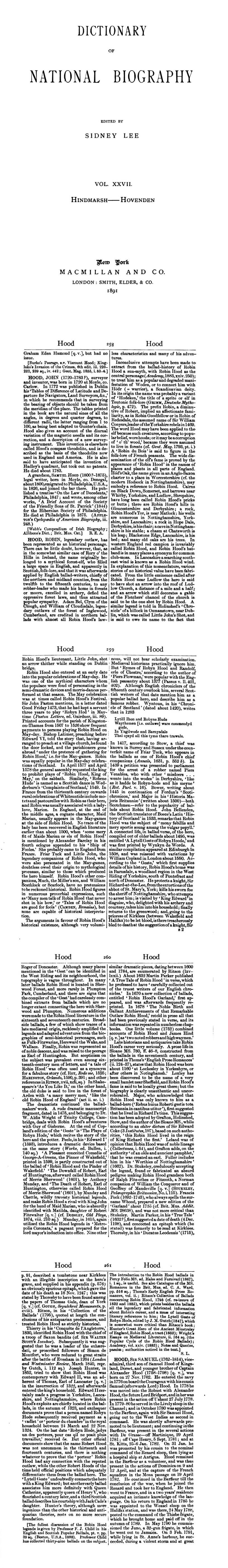 Dictionary of National Biography, Robin Hood