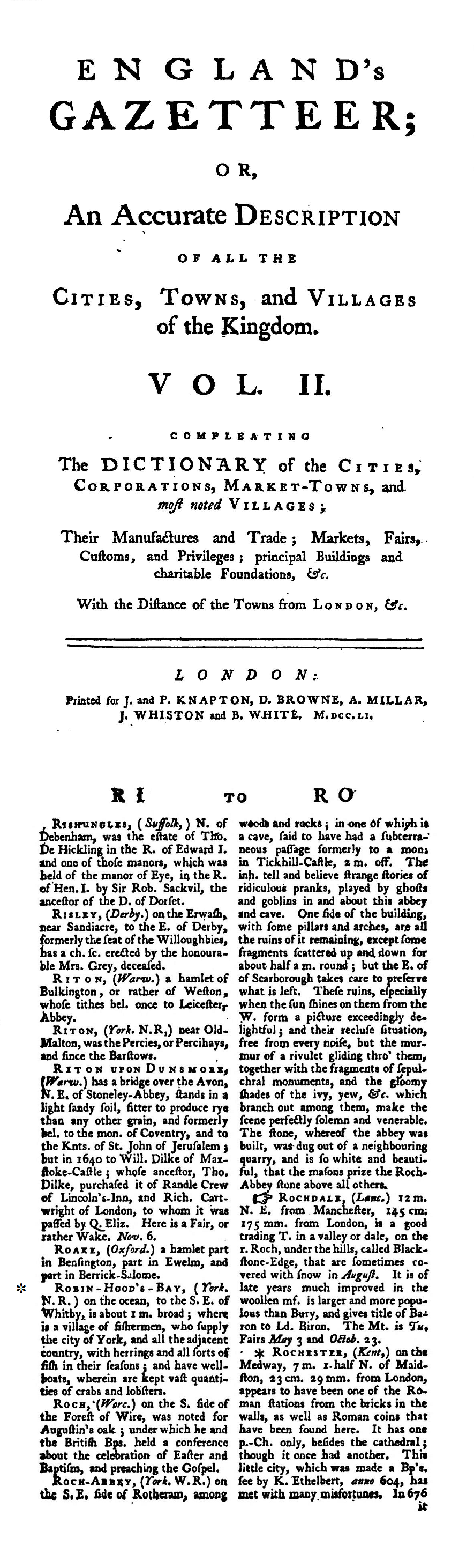 England’s Gazetteer; or, An Accurate Description of all the Cities, Towns, and Villages of the Kingdom