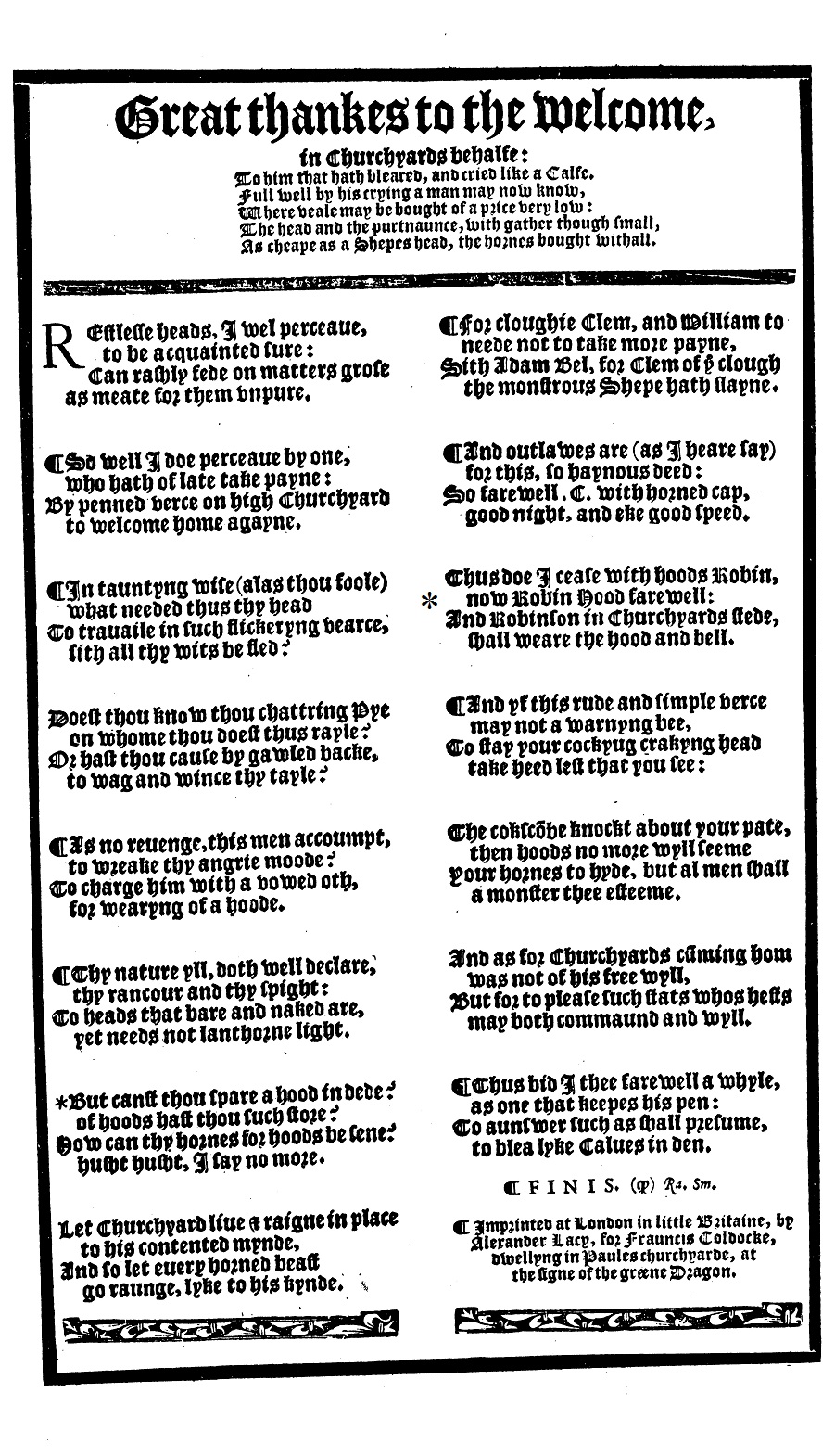 Great thankes to the welcome, in Churchyards behalfe