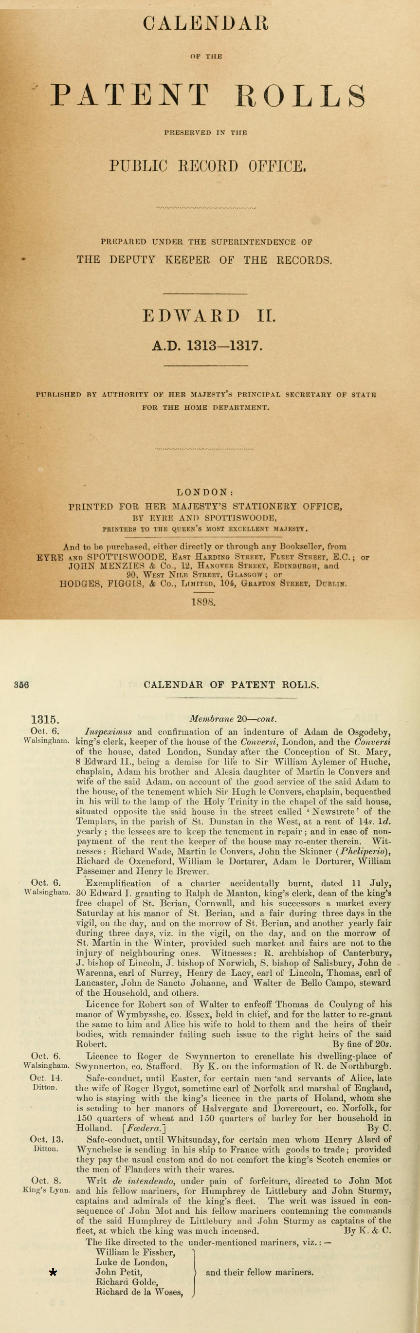 John Petit, 1315