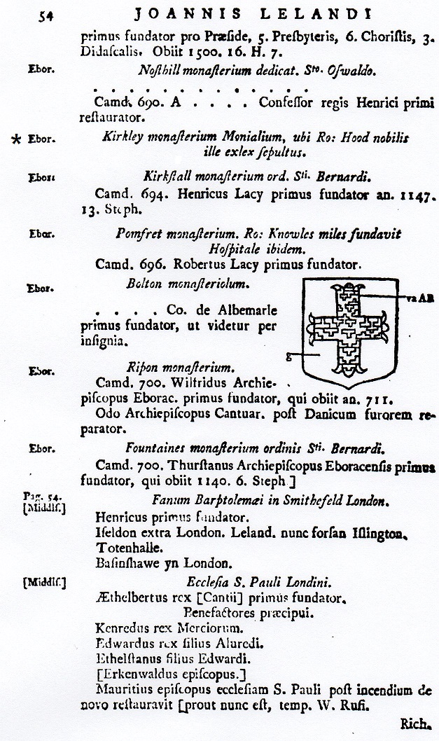 The monastery of Kirkley where the famous noble outlaw Robin Hood is buried.