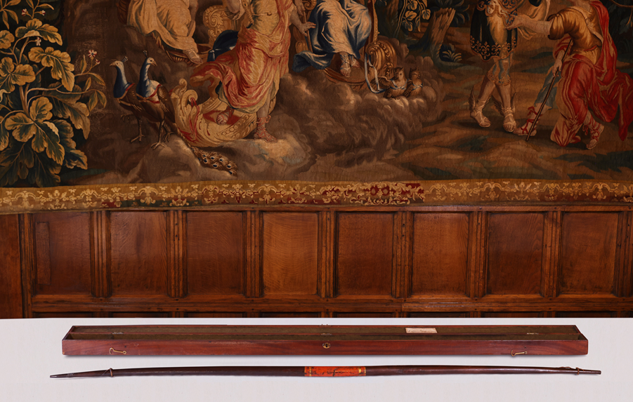 Long bow made from yew. Spencer Stanhope family legend indicates that the bow was owned by Little John. The bow will be placed on permanent display at Cannon Hall Museum near Barnsley after the completion of the current building work on the roof.