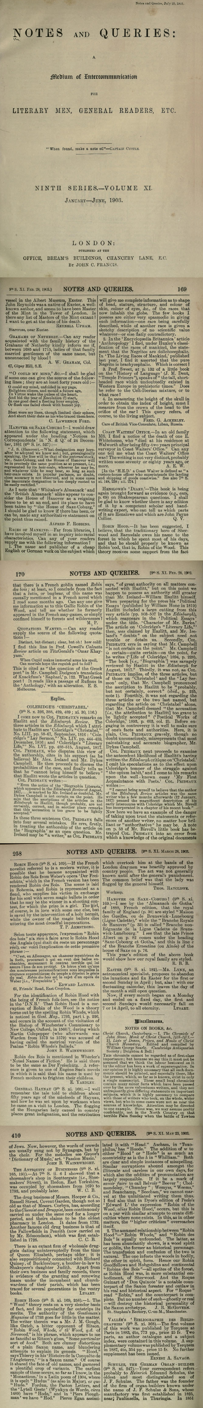 Notes and Queries, 1903