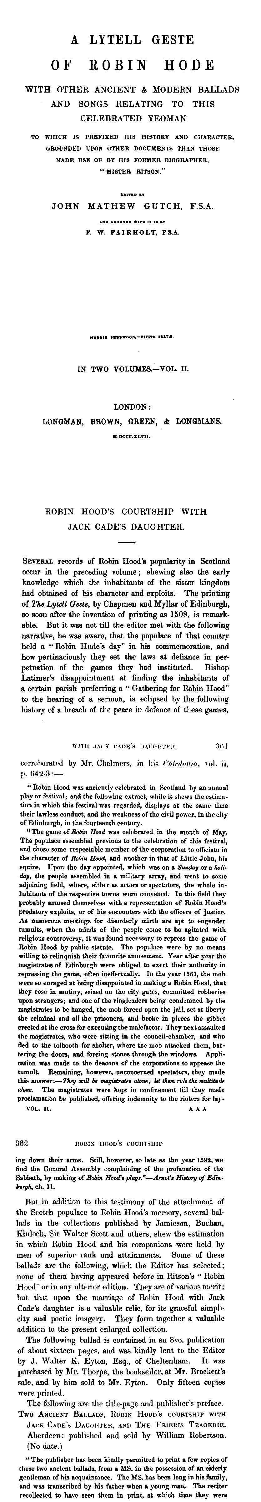 Robin Hood’s Courtship with Jack Cade’s Daughter