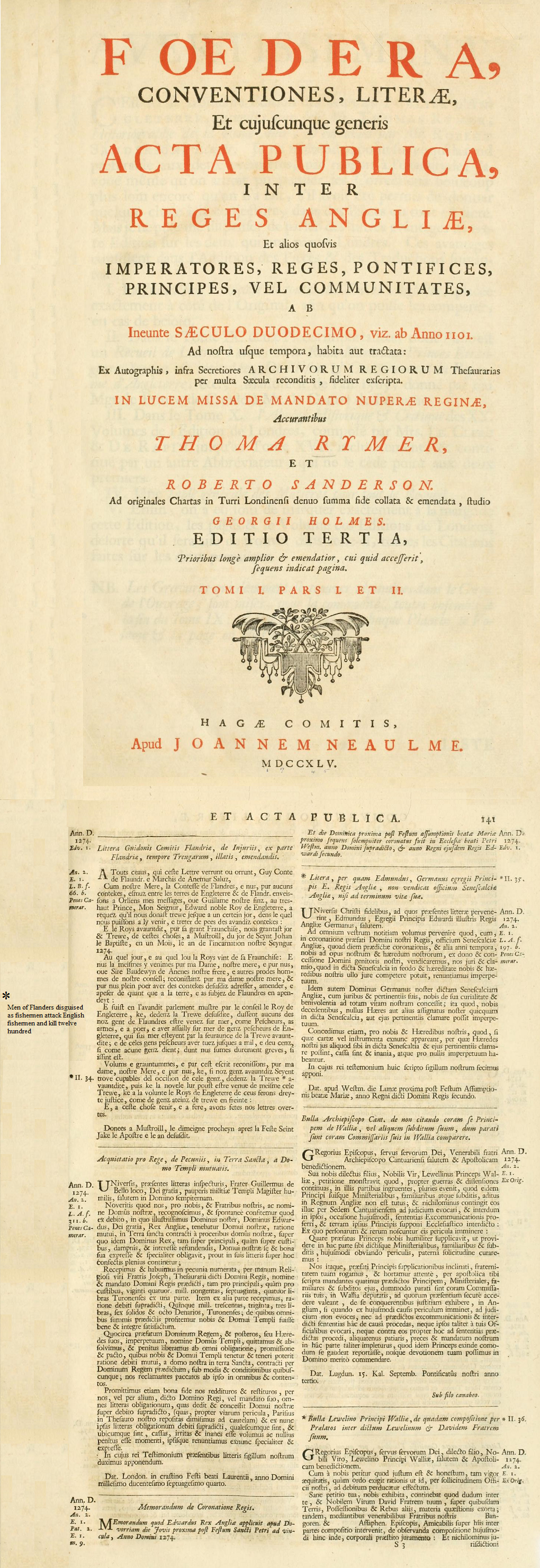 In 1274 there were acts of lawlessness in the North Sea by men of Flanders: