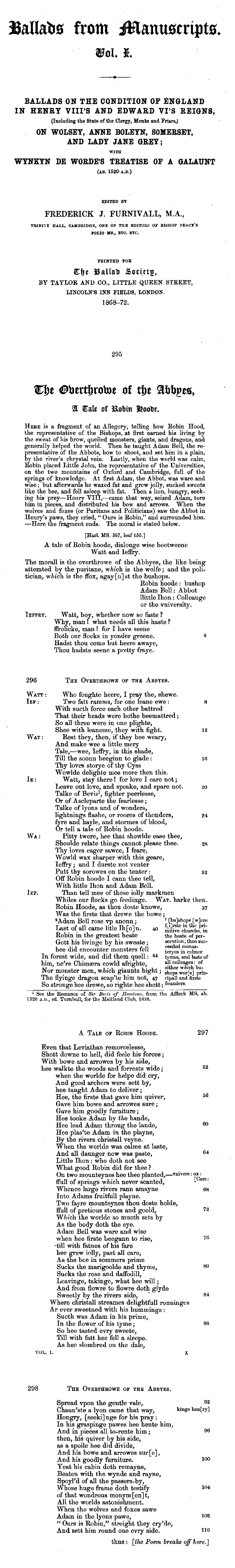 A Tale of Robin Hoode: The Overthrowe of the Abbyes 2