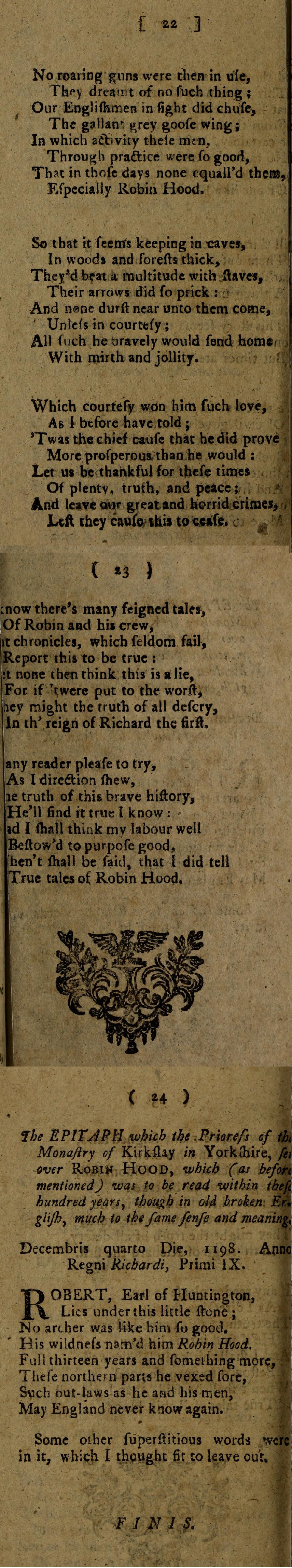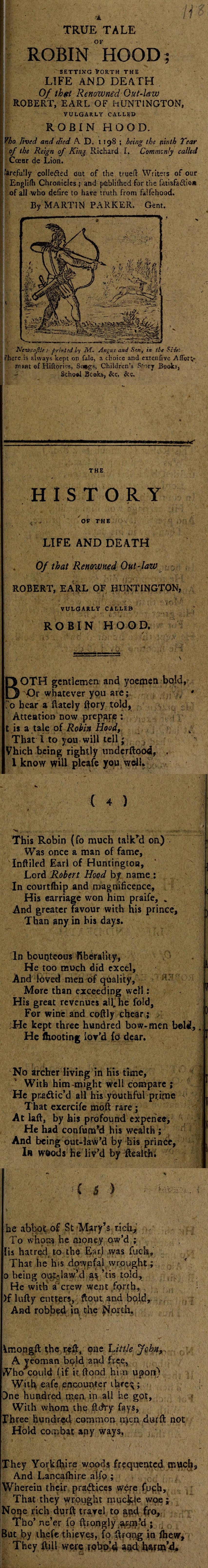 A True Tale of Robin Hood; setting forth the life and death of that renowned out-law Robert, earl of Huntington, vulgarly called Robin Hood. Who lived and died A. D. 1198