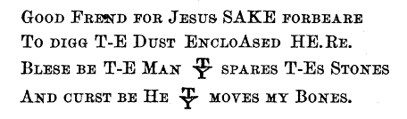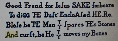 The gravestone on the floor next to the Alter in Holy Trinity Church, has no name, but it presumably covers the remains of Shakespeare. For centuries scholars and laymen have puzzled over the strange epitaph carved into it. According to Halliwell-Phillipps the present gravestone is a replacement for the original, dating from the late 18th or early 19th century. But according to IB Melchior in ‘Melchior A La Carte’ (2009), the gravestone was replaced in 1891, and he offers this as the original epitaph: